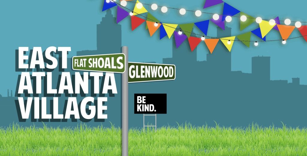 East Atlanta is a diverse neighborhood. Many neighbors work in creative fields and are in bands or create art, so the branding for East Atlanta needs to have a handcrafted feel to it while being professional-looking enough to gain corporate sponsors for NPO events & fundraisers. With East Atlanta branding, you don’t necessarily need to be consistent because you’re marketing to a diverse group of people. You do need to the marketing to be fun & lively because that is the milieu of the neighborhood.