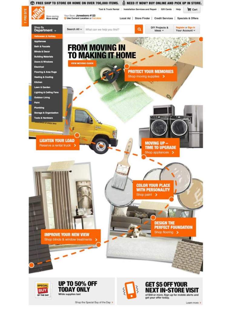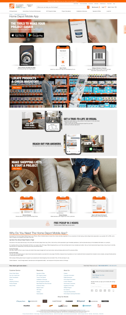 While I generally designed and built the homepage for Home Depot at homedepot.com, I sometimes take on special projects. With the homepage team, I designed and published over 150 pages per year on mobile app, mobile web, personalized homepage, specials & offers and desktop.